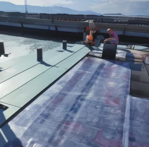 2. 防水卷材胶水施工人工费用:固定防水卷材需要使用胶水,施工人员需要进行胶水的均匀涂抹和压实操作。相对于铺设人工费用来说,胶水施工人工费用较低,一般在每平方米2元左右。