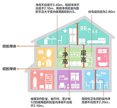 在各国的建筑规范中,对于不同类型建筑的净高都有明确的规定。通常住宅类建筑的净高要求在2.5米及以上,商业建筑的要求更高,通常需要达到3米或者更高。这些要求不仅考虑了使用功能,还涉及到消防、通风及采光等安全和舒适因素。