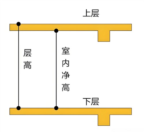 净高是测量室内空间的重要指标。简单来说,就是从地面到可以自由活动的最高点的高度。当人们在室内活动时,净高提供了对于空间感的重要参考。在商业空间中,净高往往决定了货架、橱窗、设备等的摆放方式以及行人流动的便利性。在居住空间中,较高的净高可以增强空间的开阔感,提高居住舒适性。
