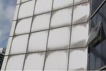 石材是微孔材料,如遇外界污染,会渗透到石材深处。油污是最常见也是最严重的污染,一旦在石材幕墙中出现,则无法清洗,唯有拆除更换。