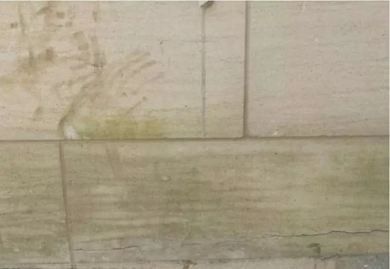 砂岩表面孔隙率较多,这些孔洞为霉菌的滋生提供了空间,通常一些砂岩装饰的石材幕墙往往表面出现难以清洁的黑斑,有些低矮的建筑甚至表面会附着绿色的苔鲜,给清洗工作带来了极大的干扰。