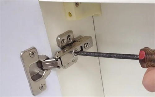 5、 检查调整:安装完所有铰链后,轻轻摇动柜门测试其开合是否稳定。如果发现有不稳定的情况,可以通过微调铰链螺丝的拧紧力度来解决。