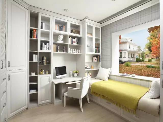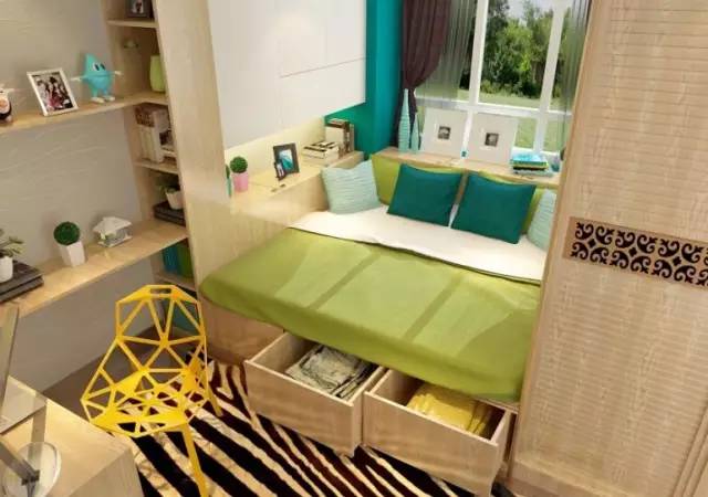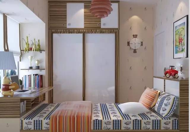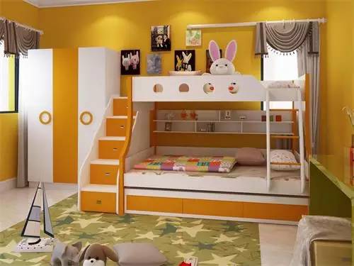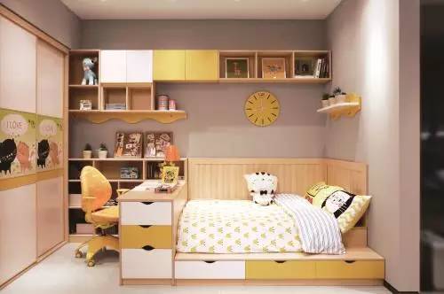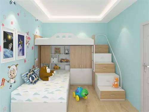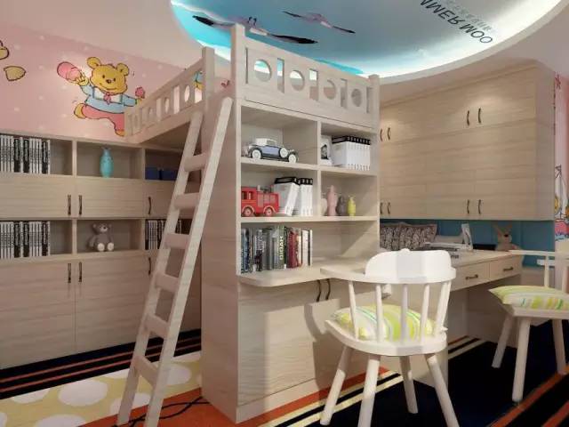 你家里的床有没有装到高处去呀~给儿童房准备一个楼 梯,把床移到高处,下面就可以做柜子啦,书本、玩具都可以放在下面,占用的空间也不算特别的多,不妨去尝试一下吧~