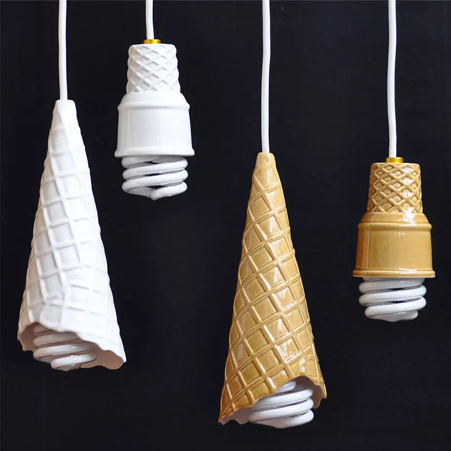 这大概是吃货们无法拒绝的一盏灯了吧!光滑的陶瓷看起来很可爱也很有质感,不过,小朋友看了会很失望吧,倒挂的冰淇淋,只能看却不能吃呢!