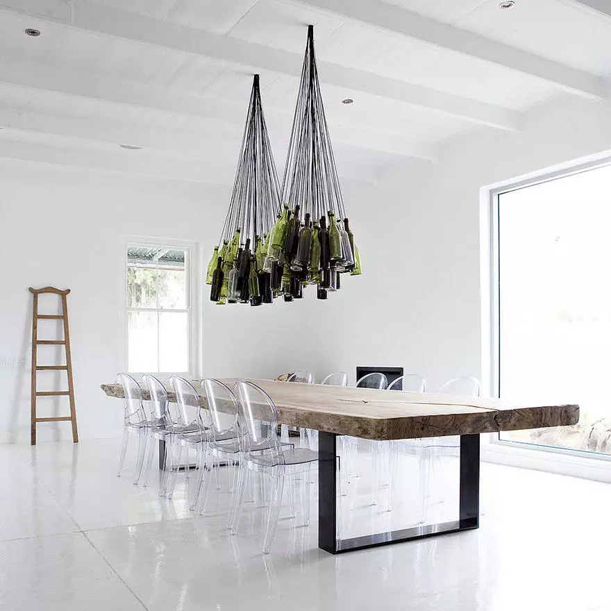 能够自己DIY又环保的酒瓶吊灯,大家不妨动手试试看,如果你是爱品尝各种酒类的人,那还可以挑选自己最中意的酒瓶,点亮之后一定很有情调吧!