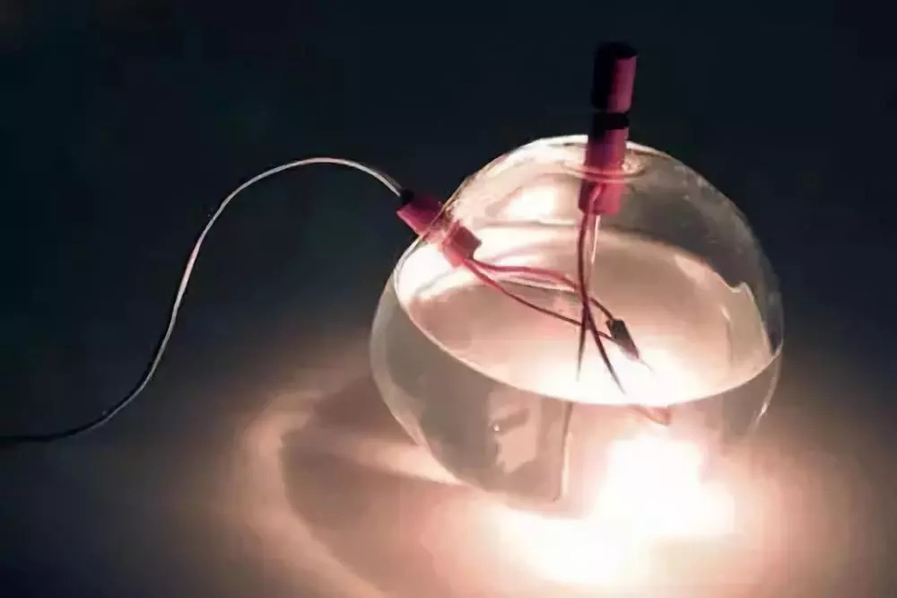 这个神奇的水灯结构奇特,外层是一个球形玻璃水缸,而它的灯泡就置于水中。