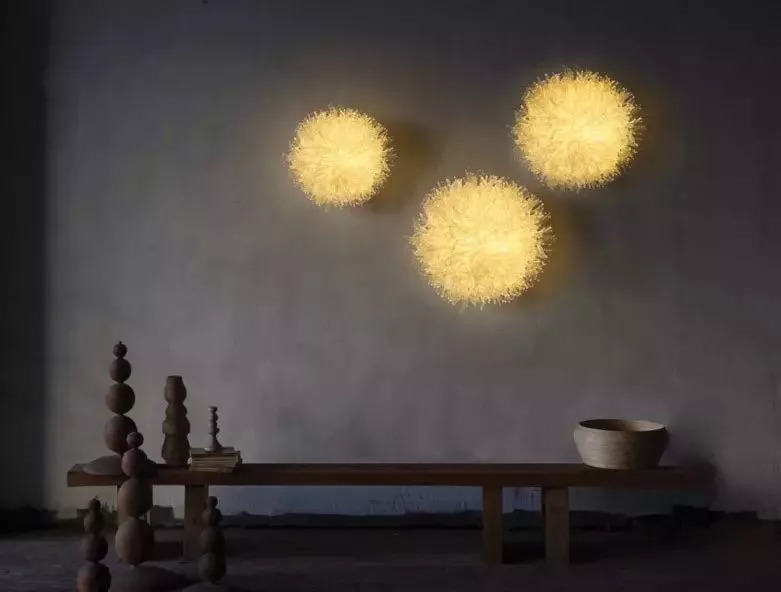 灯具由聚苯乙烯模塑制成,通过编织出每一个触手以后加热而成,几个LED灯泡营造出不同色彩,仿佛水下珊瑚虫在灯光的照耀下而变得色彩斑斓,装在客厅墙壁上,夜晚房间就变成海底世界了。