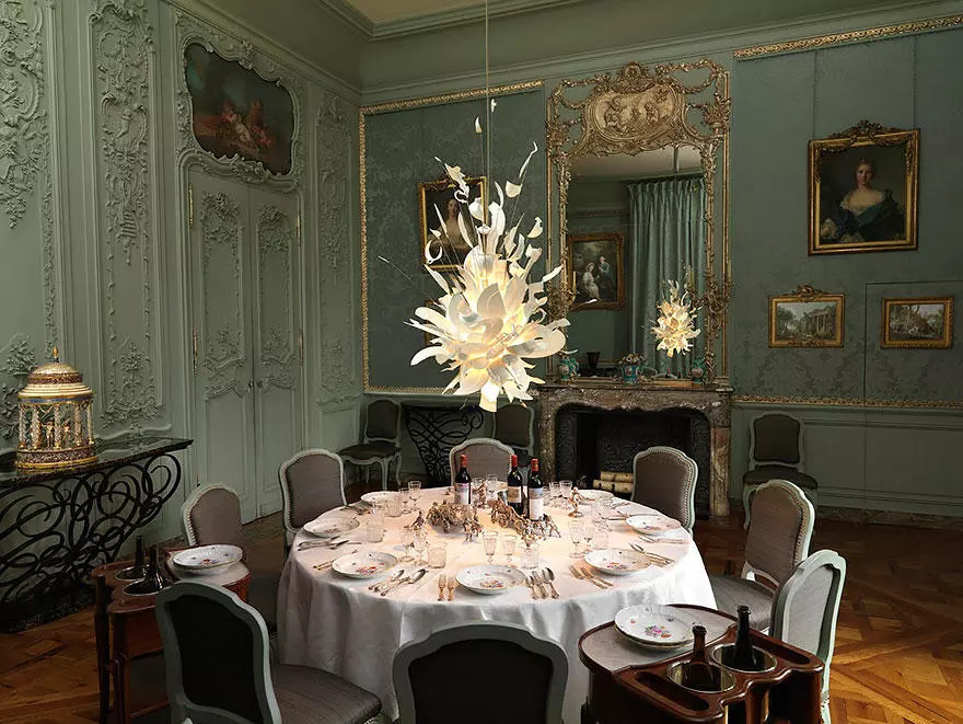 这组灯具看得好令人惊心动魄,戏剧张力十足,好像真的有一大团餐具从楼上坠落下来一般,美国大片一样的既视感!