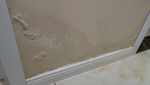 墙壁渗水会导致在墙壁上形成水渍,这种水渍一般在距离地面较高的位置出现,而不局限于地面附近。而墙壁返潮则一般局限于地面附近,且水渍的形状、规模都会随着湿度的变化而变化。