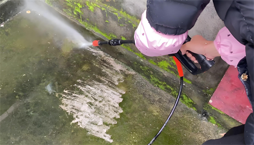 在阳光充足、干燥的天气条件下,去除水泥地面青苔的方法相对简单。您可以先将青苔表层的脏物清理干净,然后用高压水枪喷射青苔。高压水枪能喷出强劲的水流,能够轻松将青苔冲洗掉。如果没有高压水枪,您也可以用水桶和扫把代替。
