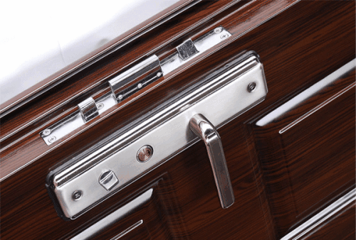 3、合格的入户门使用的是经公安部门检测合格的锁具,并用厚度三毫米以上的钢板进行了保护,大大增加了入户门的防盗性能,因此大家在购买入户门时,除了看门的板材及重量,还需看锁具的质量及功能如何。