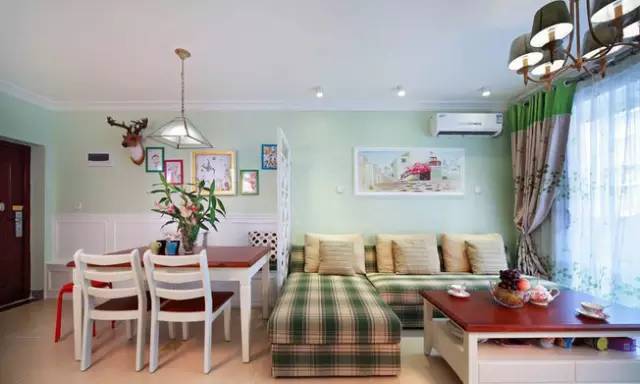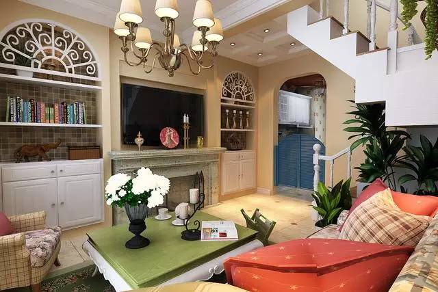 客厅布艺沙发、印花抱枕、清新的绿植都是田园风格的最佳搭配,尽力营造自然舒适的休闲空间,回到家中,窝在沙发上享受静谧的田园时光。
