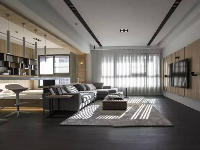 采用黑白灰色调打造的客厅,看上去整洁干净,中性色彩的软装搭配能使整个空间更加协调统一,简约舒适,这样的风格适合高压下的都市年轻人。