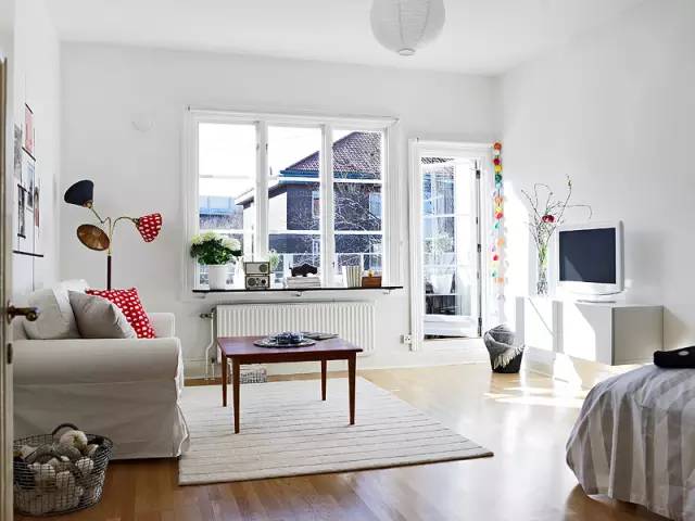 北欧风格的客厅朴素简洁,常使用石材、玻璃和铁艺,保留原始质感。白色和浅色是主色调,小部分鲜艳的色彩点缀其间,整个空间搭配自然和谐,这样小清新的装修风格最受现代年轻人的喜爱。