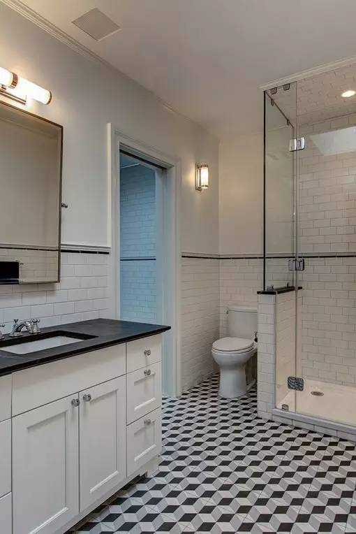一是直接起美观作用。卫生间为了美观效果,可以考虑腰线上下分色,或者上下分贴,上面斜贴,下面正帖,腰线使用的位置是瓷砖规格和卫生间设施共同决定的。