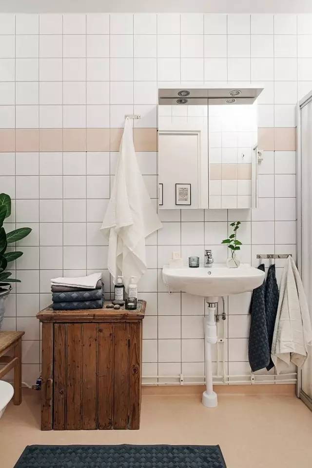 不过对于一部分房友来说,卫浴室墙面贴腰线已经过时了,贴腰线需要额外花钱,不贴照样很漂亮。