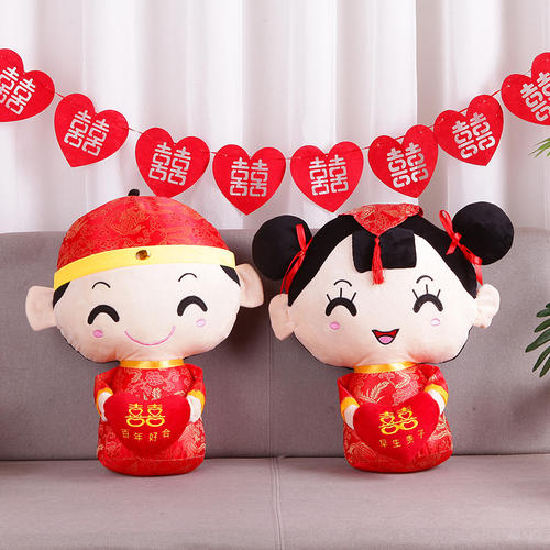 压床娃娃是一种毛绒玩具,可以放在婚房里作为装饰摆设,这样能起到很好的装饰效果。