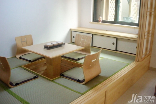 榻榻米要配合地台使用,而且一般具有储物功能。与单纯分割空间及作休闲区用的地台不同,其在选材和搭建方式上都很有讲究。