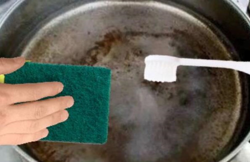 倒掉锅中的溶液,用软的海绵或刷子轻轻擦拭焦痕。如果焦痕还是很顽固,可以将小苏打直接撒在焦痕上,再次擦拭。