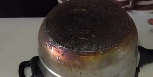 在锅内加足够的水,直到覆盖所有烧焦的区域。