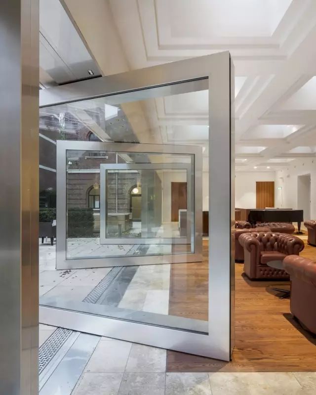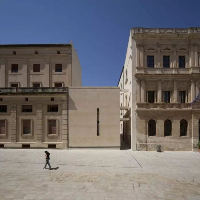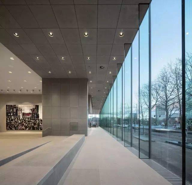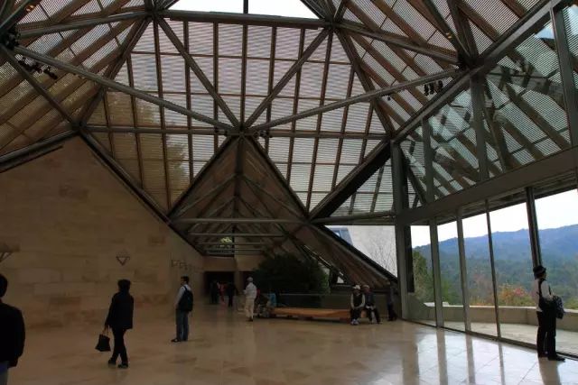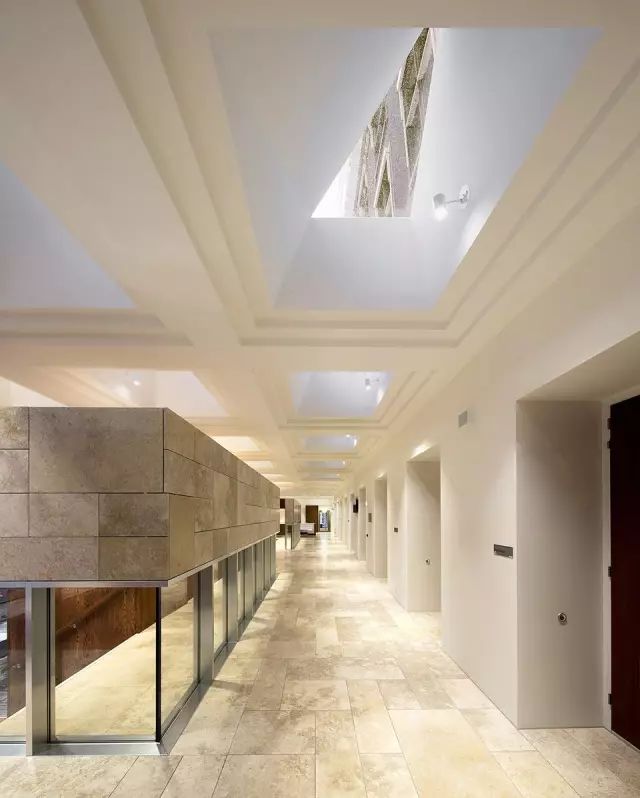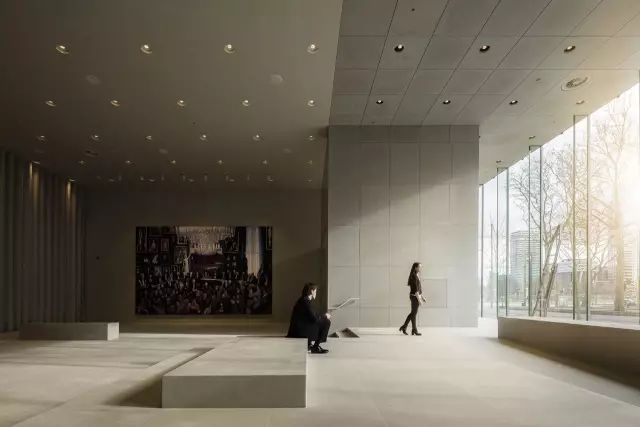 在美秀博物馆的大厅铺上了淡土黄色的石灰石