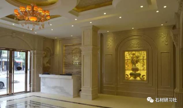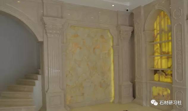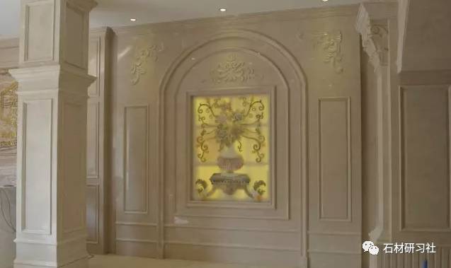 材质特征:奶油底色,硬度罕见,光度极高,体积密度高,养护周期比西班牙米黄和莎安娜米黄更长,即使作为地板也无可挑剔,是高档的大理石装饰品。
