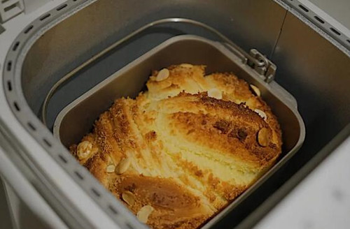 8、取出面包:使用耐热手套小心地取出面包桶,尽量避免接触到热的面包桶。可以用木铲轻轻地将面包取出,放在冷却架上,待凉后再切片。