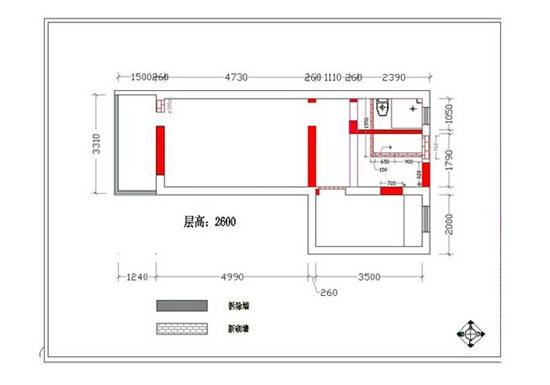 一般设计师用斜线表现拆除的墙体,实心的粗线条表示新砌的墙体,这样一般人都能看得出来墙体的改动了。