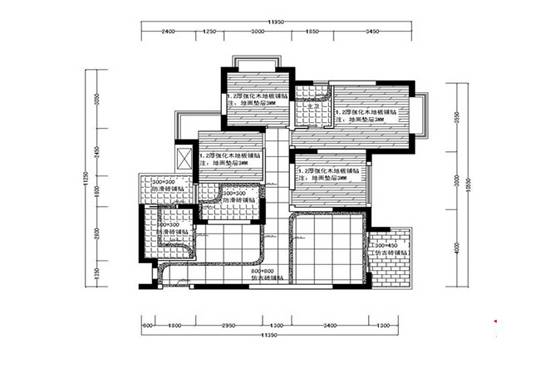 一般需要标注地面所用的材质种类,是瓷砖还是地板,拼铺走向、图案及不同材料的分界说明。好的设计师绘制的地面材质图一般都能数出所用地砖的数量,这样就让预算做不了手脚,地板的需要量也可以再图上计算出来。当然,这些都是毛估的,实际的用量还是要把损耗考虑进去的,不过可以作为一个参照物看设计师计算的是否正确。
