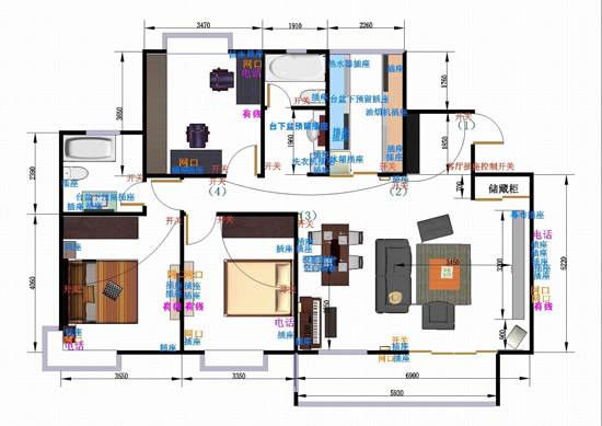 音响线、电视线、电话线、网络线都是属于弱电的范围,布置的时候要考虑其相互之间的干扰性。现在很多家庭在装修的时候,都会考虑背景音乐、灯光控制等智能家居系统,最好能让专业的智能家居公司来设计,也会出具相关的布线图。